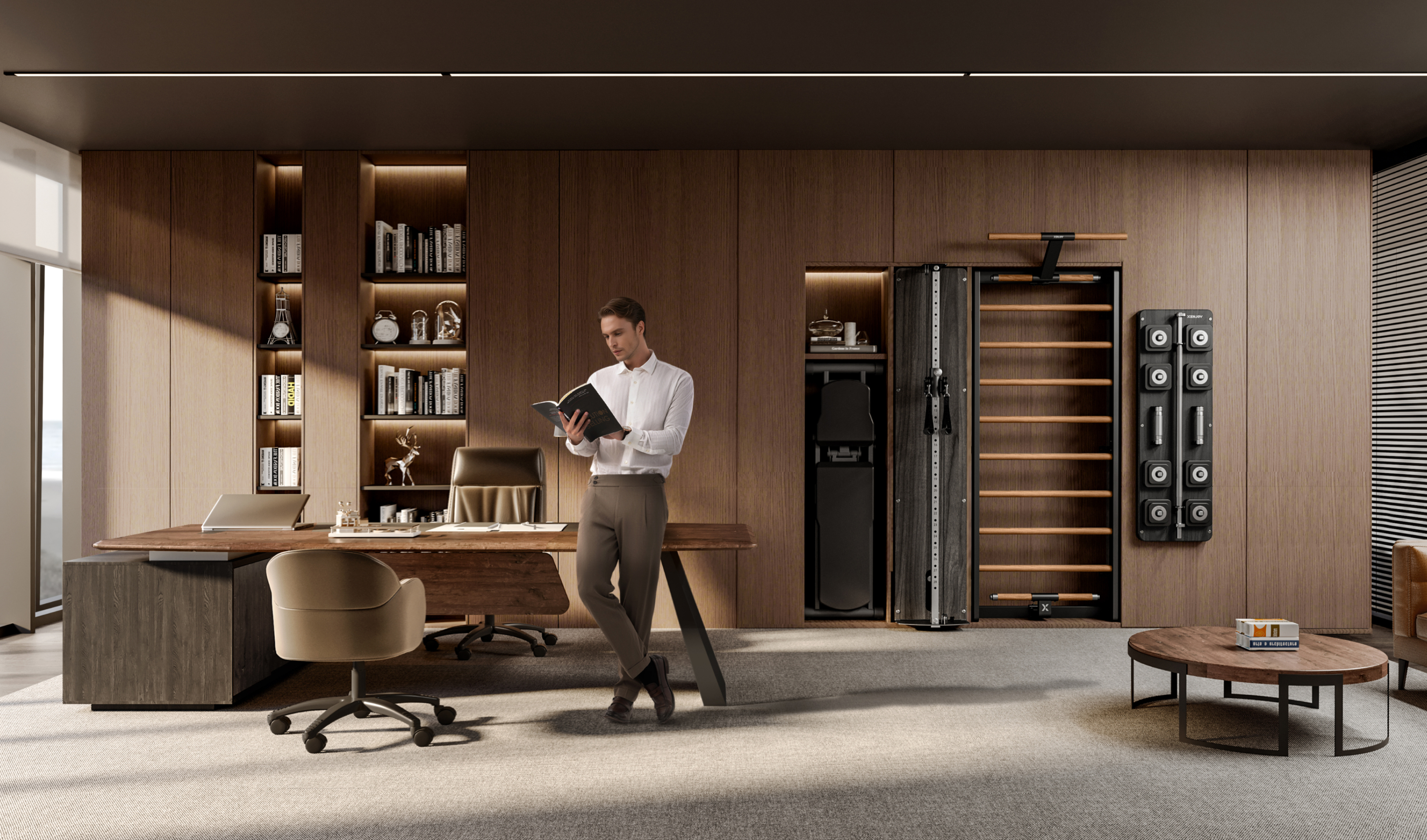Carefully curated premium materials from around the world; Artisan-crafted details in solid walnut, brass and genuine leather; Every XENJOY becomes a trusted, elegant companion for your training.